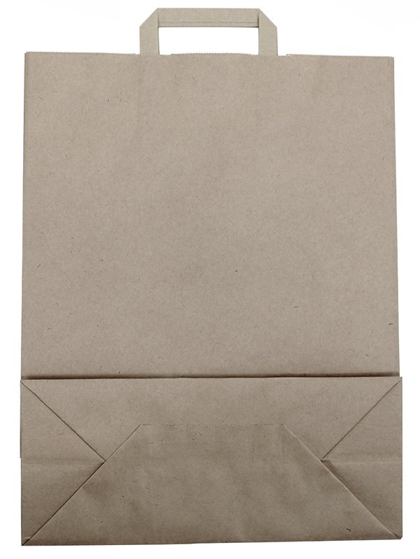 Пакет-сумка с плоскими ручками выполнен из вторично переработанного сырья макулатуры. Является экологически чистой, прочной, стильной упаковкой для хранения и доставки пищевых продуктов и различных товаров. Имеет прямоугольное дно, удобный для фасовки лотков и контейнеров с едой. Плоские широкие ручки и высокая плотность материала увеличивают прочность пакета. Применяется в кейтеринге, ресторанах быстрого питания, торговых магазинах, пекарнях. Возможно нанесение логотипной или рекламной инфо...