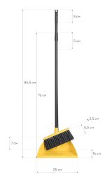 Комплект для уборки Optiline включает в себя щетку Ленивку и совок. Длинная щетина щетки обеспечивает качественный сбор мелкой пыли и мусора. Щетка и совок имеют длинные ручки для комфортного проведения уборки. Комплект подходит для сухой уборки внутренних помещений и улицы. Рукоятка совка оснащена держателем для совместного с щеткой компактного хранения, имеет возможность настенного размещения. Цвет желтый.