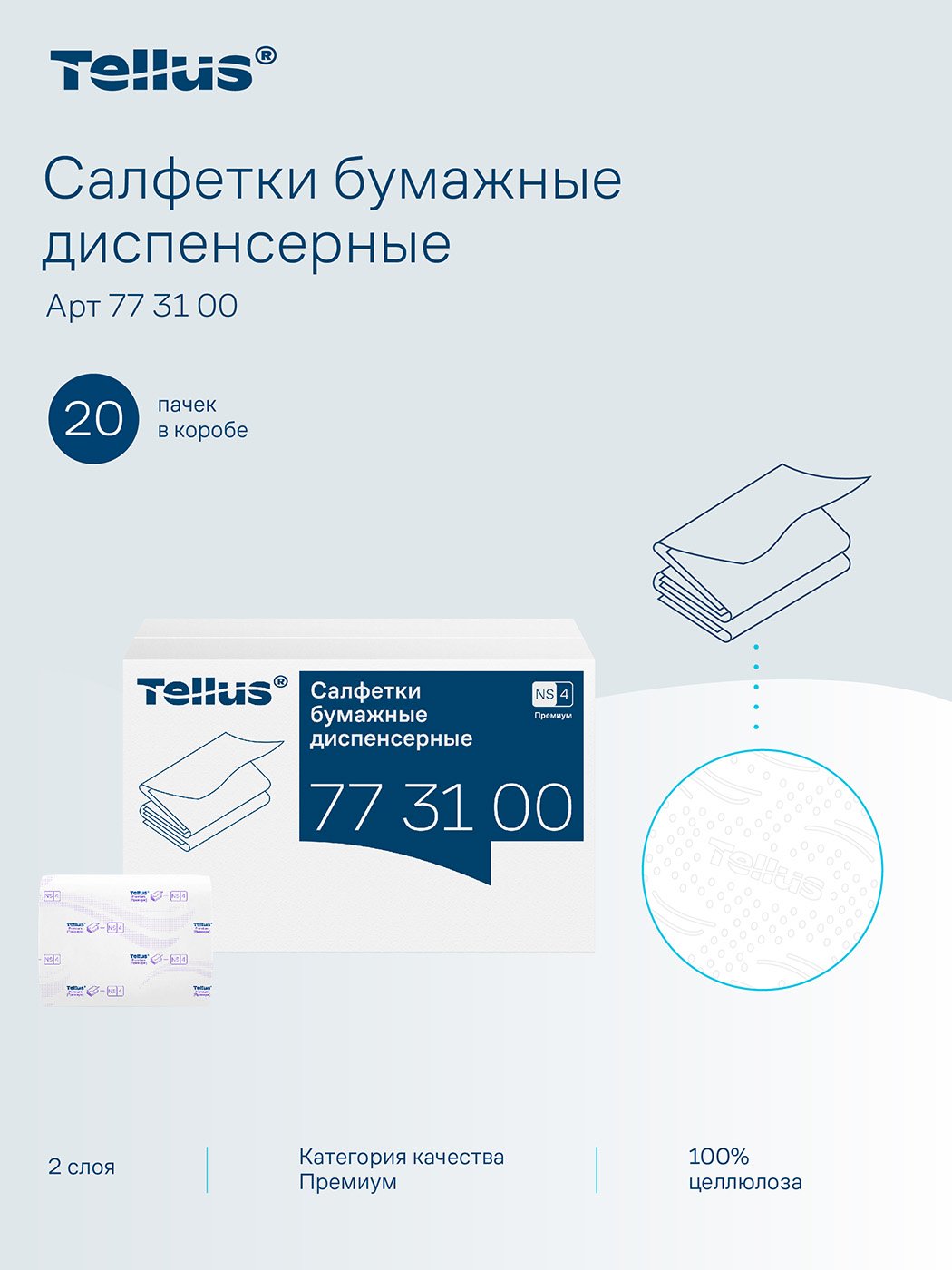 Tellus - Новое имя бренда Торк. Салфетки диспенсерные Торк-Tellus Экспресснап — прекрасное решение для заведений, которые ценят удобство, экономию и качество. Мягкие и белоснежные салфетки обеспечивают высокий уровень комфорта и заботы о ваших гостях. Благодаря полистовому отбору системы N4 обеспечивается высокий уровень гигиены и сокращается расход салфеток до 25% по сравнению с использованием традиционных диспенсеров для салфеток. Tellus диспенсерные салфетки категории качества Премиум отл...
