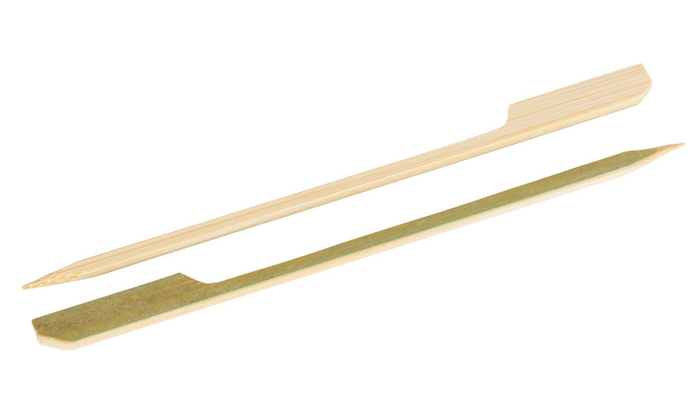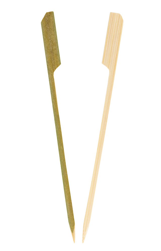 Декоративные пики Optiline (Оптилайн) Гольф изготовлены из натурального бамбука. Используются для создания канапе, мини-бутербродов, украшения блюд. Остро заточенные, прочные. Длина пики для канапе — 15 см. Двухцветные: с одной стороны цвет листьев бамбука, с другой - натуральный цвет древесины. В упаковке 100 штук. В коробке 30 упаковок.
