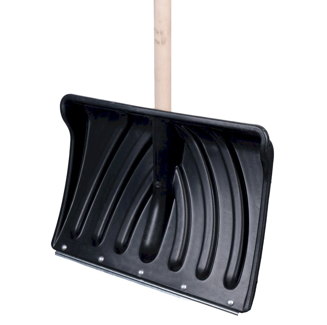 Лопата для уборки снега пластиковая Крепышок, 460х335х1380 мм, оцинкованная накладка, деревянный черенок, V-ручка