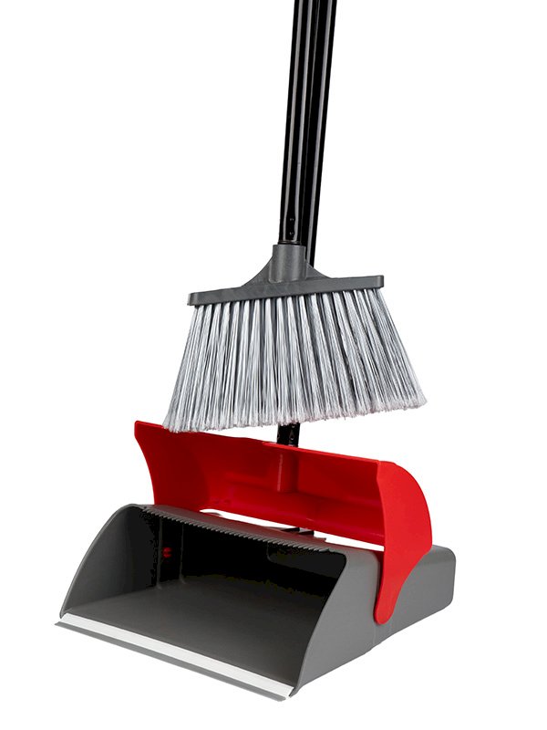 Комплект совок с крышкой и метлой с длинной рукояткой, красный