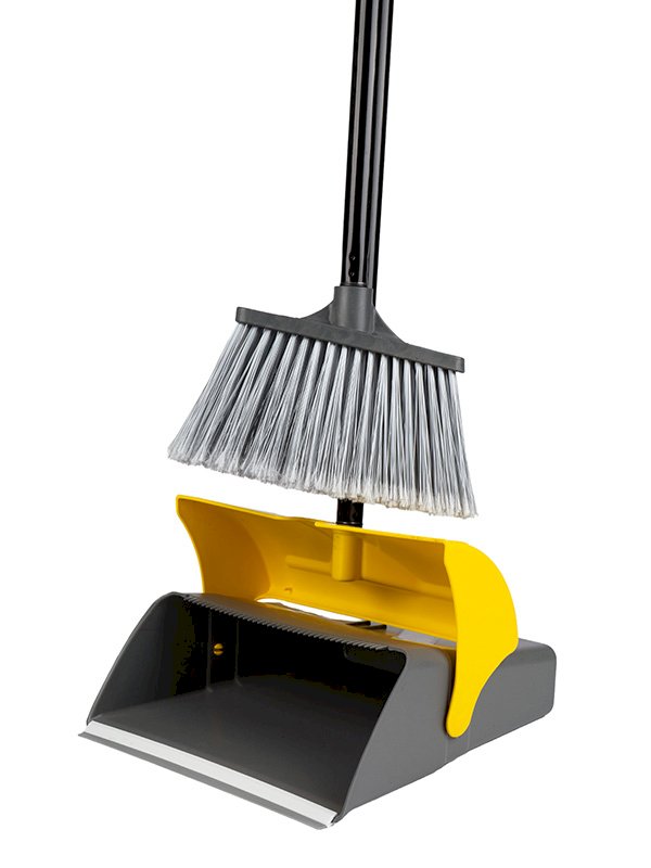 Комплект совок с крышкой и метлой с длинной рукояткой, желтый