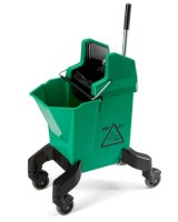 Ведро на колесах ErgoU2 SYR выполнено из прочного ABS-пластика зеленого цвета. Общий объем 21 литр, рабочий объем 13 литров. Предназначено для интенсивной влажной уборки и может быть доукомплектовано до уровня полноценной сервисной тележки. Запатентованный фильтр-ловушка, встроенный в корпус, эффективно удерживает загрязнения, снижая расход воды и моющих средств до 30% и позволяя обработать до 300 м² на одной заправке раствором. Особая конусообразная форма ведра имитирует поток воды, аналоги...