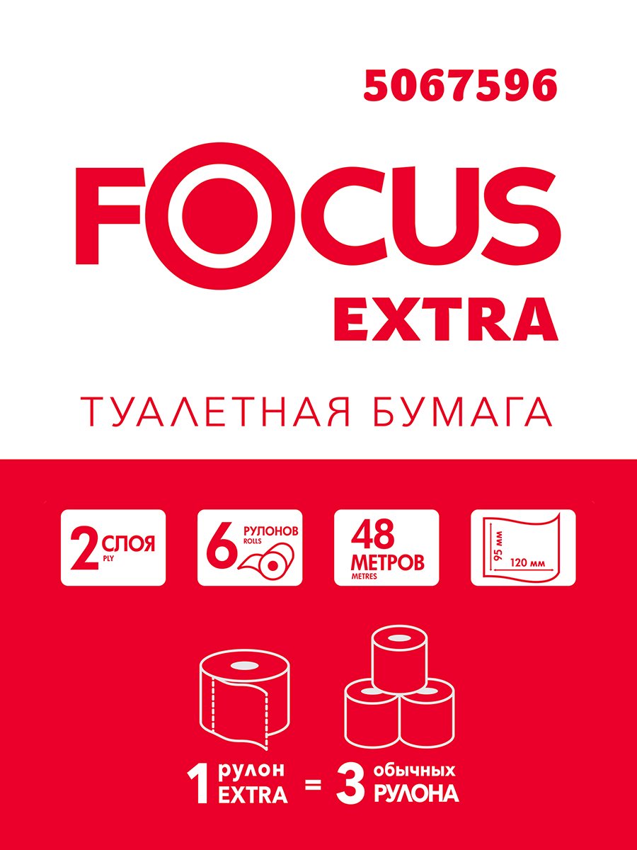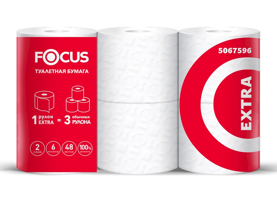 Туалетная бумага Focus Extra, 2-слойная, белая, 6 рулонов в упаковке