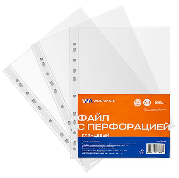 Файл с перфорацией Workmate, 50 мкм, глянцевый, A4, 100 штук