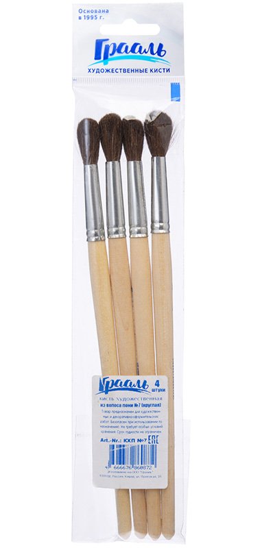 Кисть художественная из натурального волоса пони предназначена для детского творчества. Мягкий волос хорошо впитывает краску, эластичный, прекрасно сохраняет форму, легко промывается водой. Кисть может быть использована для рисования красками на водной основе (акварель, гуашь, темпера). Универсальная круглая форма кисти предназначена для нанесения линий, закрашивания, создания фактуры, работы над деталями. Ручка изготовлена из натурального дерева. Цельнометаллическая обойма прочно удерживает вол...