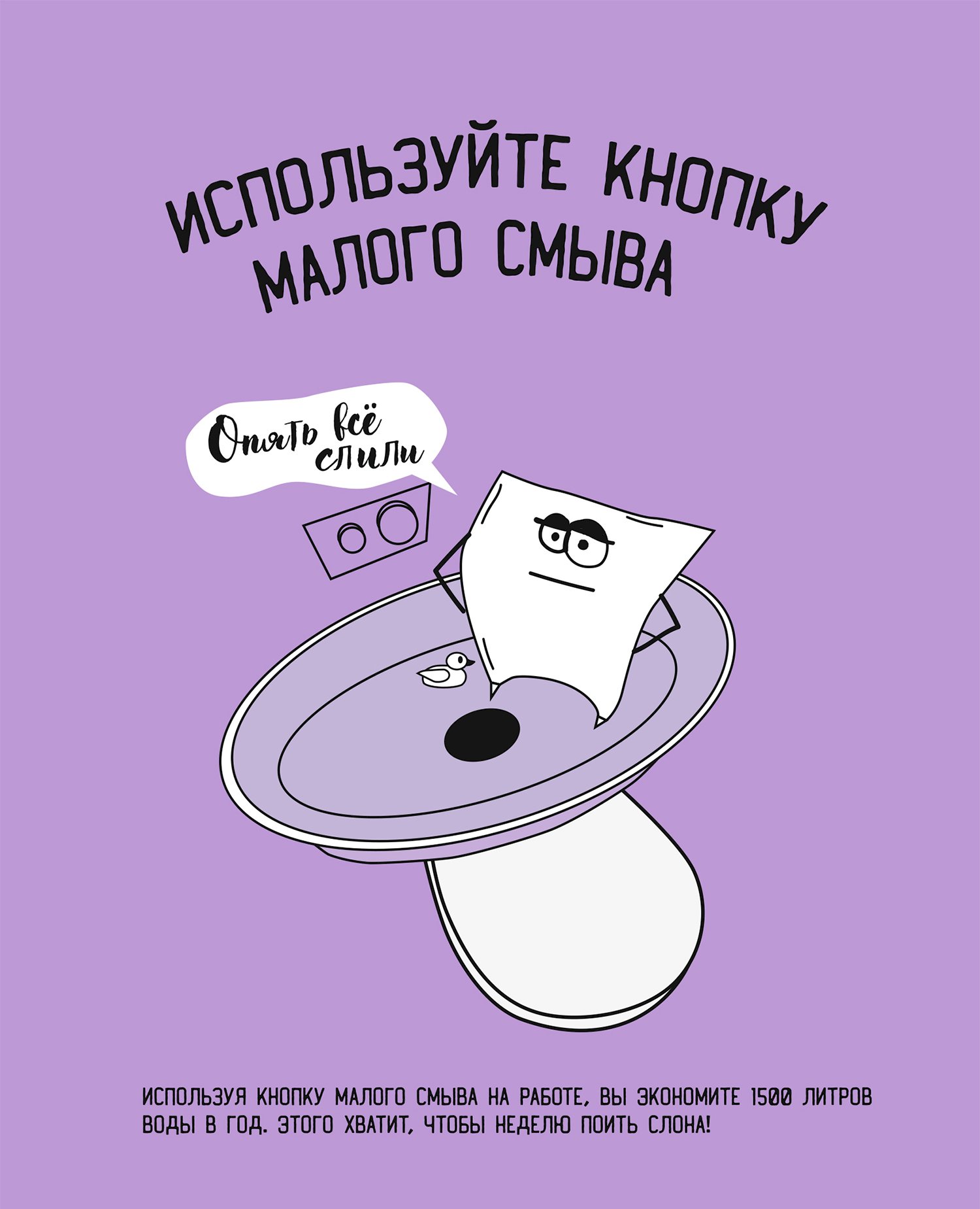 * Экономия воды. По оценке Агентства по защите окружающей среды, в США замена всех унитазов на модели с кнопкой малого смыва могла бы сэкономить 7,5 млн литров воды ежедневно. Уверены, что для нашей страны цифры оказались бы не менее впечатляющими. * Экономия средств. Плата за воду — не последняя строка расходов для дома и офиса. При установленных счетчиках воды экономия становится оправданной материально, тем более что вам она не стоит ни малейших усилий. * Экономия в обслуживании. Унитазы с двойной системой смыва не имеют старомодных сифонов, а используют гравитацию, чтобы делать свою работу. Это позволяет избежать множества проблем и поломок. Предлагая простые экошаги, мы не призываем отказаться от привычных благ. Кнопка малого смыва лишь помогает реализовать экологичный принцип «Используй только то, что тебе нужно». Одно нажатие кнопки — маленький, но весьма регулярный вклад в сбережение ресурсов, который доступен абсолютно каждому!