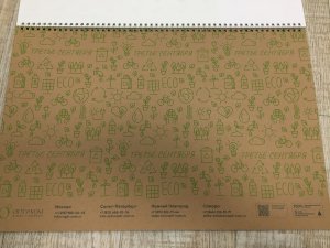 Шпигель календаря изготовлен из полностью переработанного картона, а блоки напечатаны на бумаге из ответственных источников.