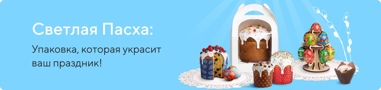 Погрузитесь в атмосферу Пасхи с ОПТИКОМ! Мы предлагаем разнообразные атрибуты для создания праздничной атмосферы. В нашем каталоге вы найдете красивые коробки для куличей, бумажные формы для выпечки, декоративные ленты и упаковку для куличей и кондитерских изделий, и другие товары для воплощения ваших кулинарных идей.