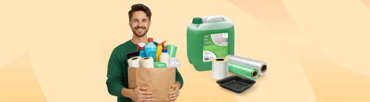 Полное оснащение для ритейла: упаковочные материалы, уборочный инвентарь, дезинфицирующие средства, СИЗ, товары для кассиров и маркировочная продукция.